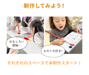 はい、ご自身のお子さんの様子や作品を撮影することは問題ありません。ただしSNSなどに公開する際は、他の会員の写り込みにご配慮ください。