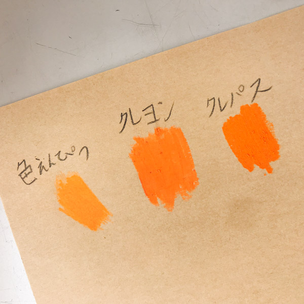 発色の違いに注目すると、ペンや色鉛筆よりもクレヨン・クレパスのほうが、紙の色に影響なく色を載せやすい。含まれる色の量、成分、ワックス量の違いがあり、色をしっかりと載せたい制作時にはクレヨン・クレパスがおすすめ。