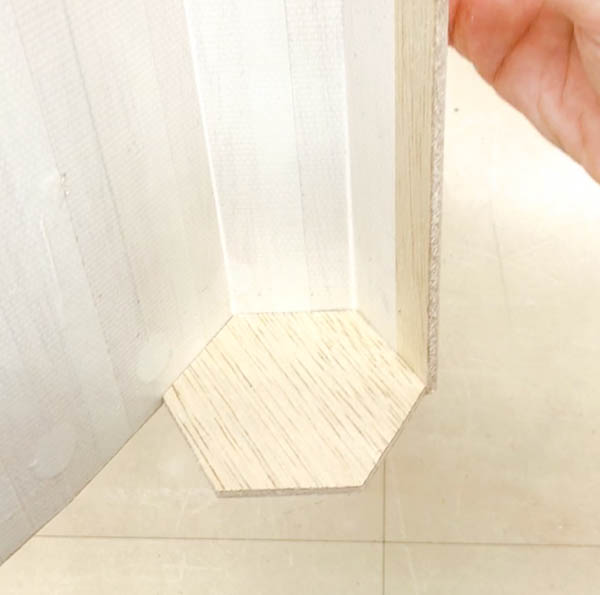 立体にするための仕上げは、六角形パーツ。布テープで接合したパーツを、のり巻きのように六角形に巻きつけてみると…