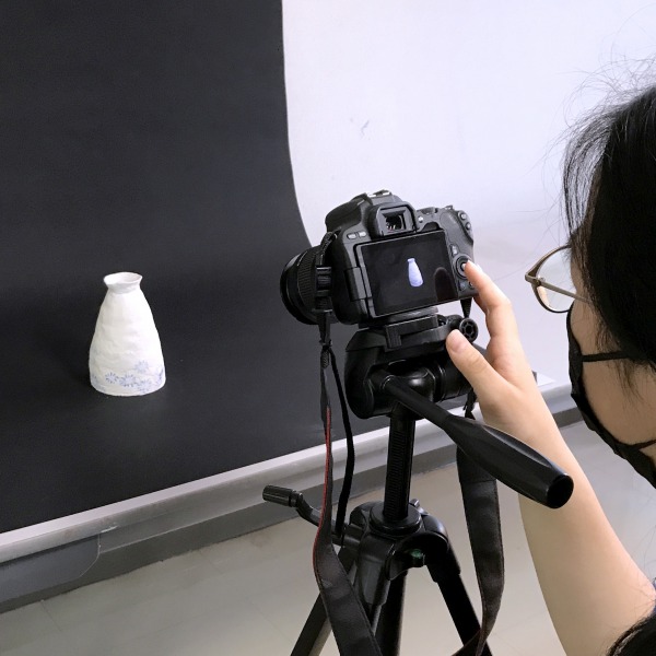 文章を書いたことで作品の世界観がはっきりしました。次はその文章と並ぶ、自分の立体作品の写真の撮影をしました。光の角度や遠近の工夫で「ちゃんとした陶芸作品に見える」「本当に元々あったみたい」…見え方や雰囲気が変わる体験をしました。