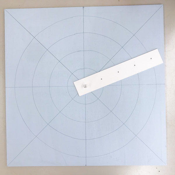 さらに「円」のガイドも加えました。普通のコンパスでは書けないくらいのおおきい円が必要なので、紙製テンプレートを用意。使い方を知ると「使ってみたい!」みんな一気にぐるりと描き上げました。「すごくきれいにかけた」来週の完成が楽しみになってきた様子です。