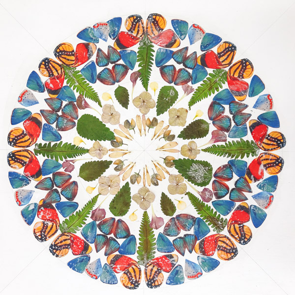 蝶々の羽根を使った万華鏡のような絵画シリーズもあります。「ほんものはだめでしょ」「かわいそう!」もっともです。でも見ていると…「きれい」「すごい!」少しずつちがう反応が。