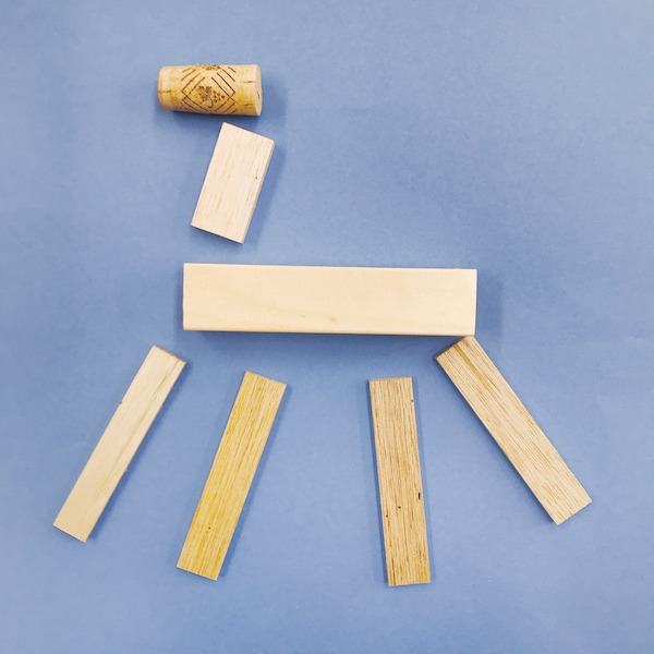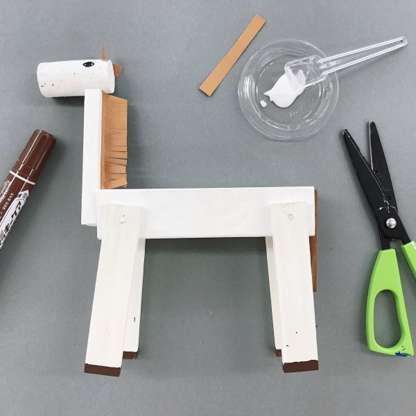 馬はどんな形?いろんなサイズの木片から組み合わせてみました。えらんだ首が長いと「それってキリンだ!」いろんな形を組み合わせては楽しみつつ、「しっぽもないとね」。それぞれがぴったりだ!というパーツをセレクト。