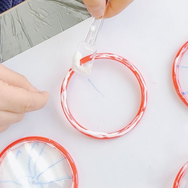 作った車輪のパーツ同士をボンドで接着しました。つけるボンドが多すぎると、つけたくない他のエリアにもはみ出てしまう!つける場所と量を確かめながら進めました。
