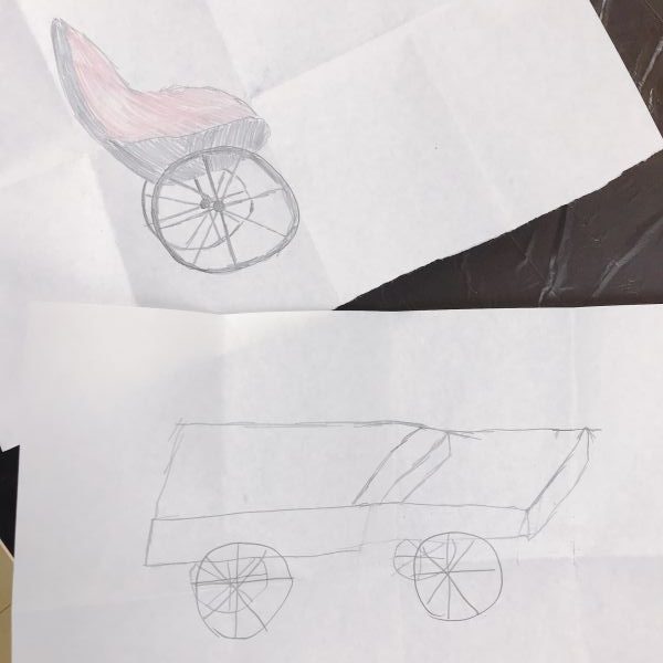先週から制作を楽しみにしていた様子のキッズたち。自分好みの馬車のスケッチをしてきた子も!みんなはじまる前からうきうき、やる気満々。イメージした形をこどもたちそれぞれの力で実現できるよう、まずは屋台骨になる共通部分をしっかり作るのが今回の目標です。