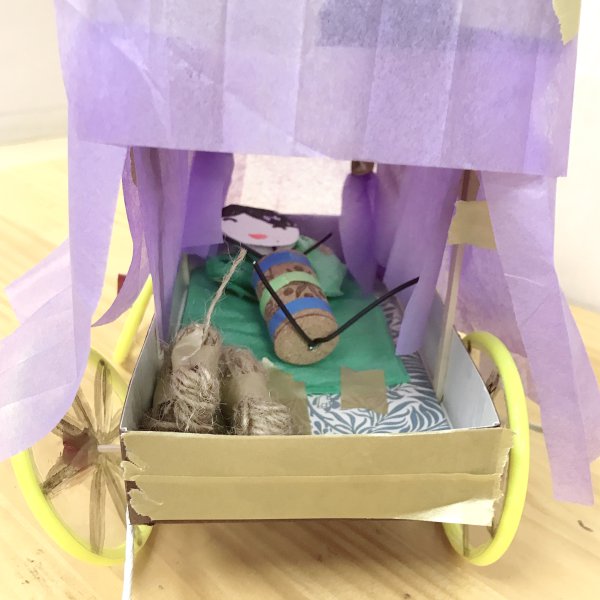 こんな馬車、映画でみたことある!砂漠が似合いそうなワイルドテイストの馬車もできた!高学年の男の子たちを中心に「本物みたいに再現してみたい」という熱がすごかった。