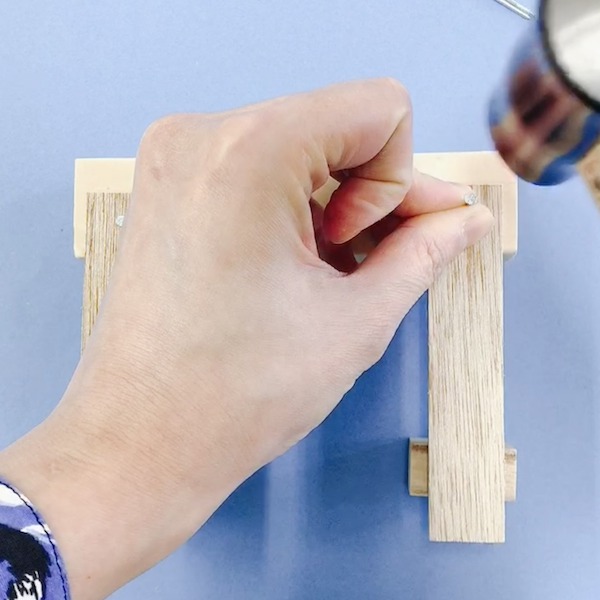 馬の組み立ては「くぎうち」で行いました。先にくぎを打ちたいところに下穴を開け、くぎがすべらないように工夫します。11月にくぎうちをした経験がある子は手順の理解も早く、小さい子に教えてあげる場面も。頼もしい!