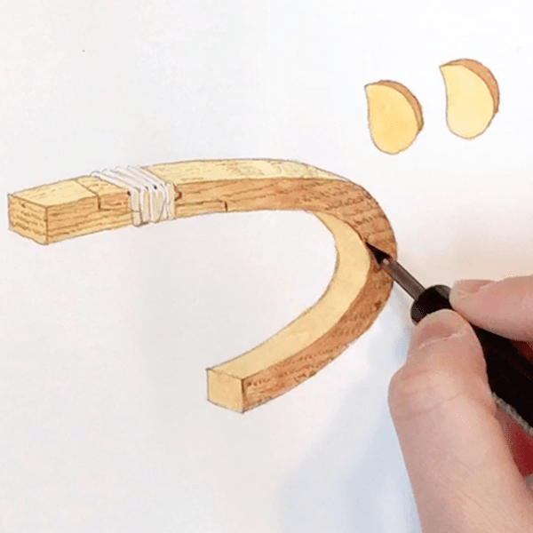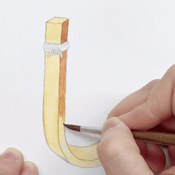 形ができたら透明水彩絵の具で着彩がスタート。全体的にやさしい色合いですが、しっかりと陰影もついていることに注目。絵の具は乾くと色が薄くなりがちなので、少し大胆に使ってOKですよ。