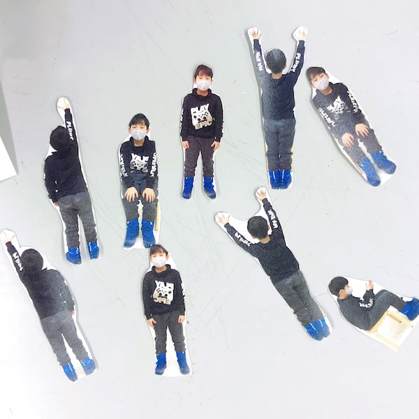制作の合間に、自分の絵に登場させる小人用のポーズを撮影。カメラの前でいろんなポーズをとったら、次回の制作で使えるように出力をしておきます。