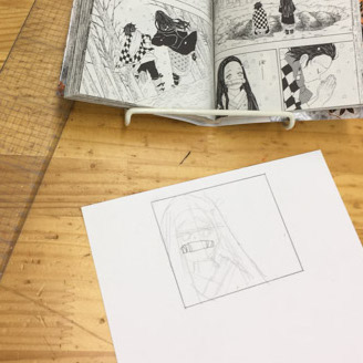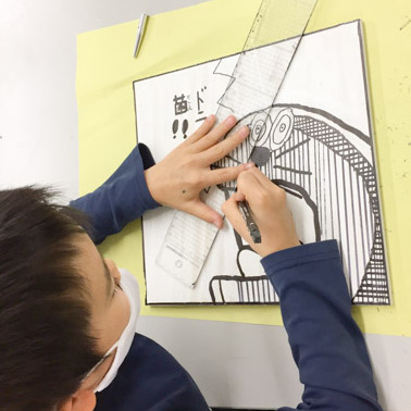 前回たいへんだったコマの計測、拡大、製図の作業をもう一度おさらいするように制作していきました。自分で選んだコマだからみんなモチベーションが高く「なんか比率が違う気がする」「先生、これ歪んでませんか?」などチェックがていねい。
