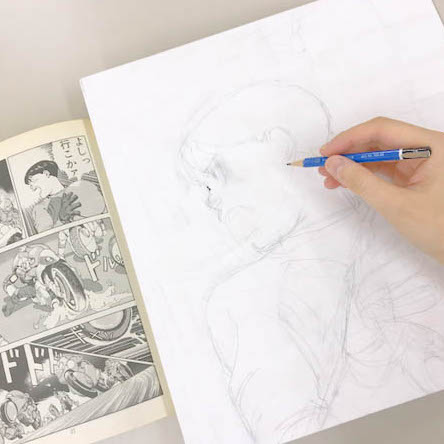 つけペン体験もほどほどに、本制作のお話へ。今回は自分で持参した漫画から1コマだけを選んで、徹底的に模写をしていくことに。「えー!選べない」「どれがいいかな?」漫画は1コマずつ、形や見え方、流れなどが細かく工夫されています。どこを抜粋するか、真剣な様子でページをめくっていました。
