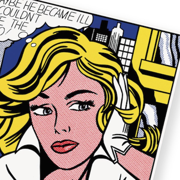 漫画はペンやスミだけではなく、スクリーントーンなど特殊な道具も使われています。今回はアメリカのコミックを描いたポップアーティスト・リキテンシュタインの作品が参考になりました。キャンバスにすべて手描きで仕上げているというから驚き!