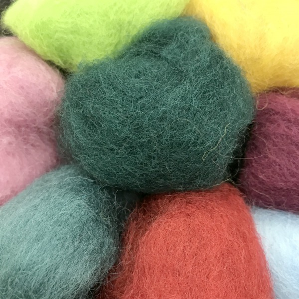 さっそく羊毛のフェルト化に挑戦。よく絡み合うためには繊維の流れが大事なので、はじめにていねいに羊毛をほぐしていきます。色によって少し柔らかさが違うので扱いには細心の注意が必要です。