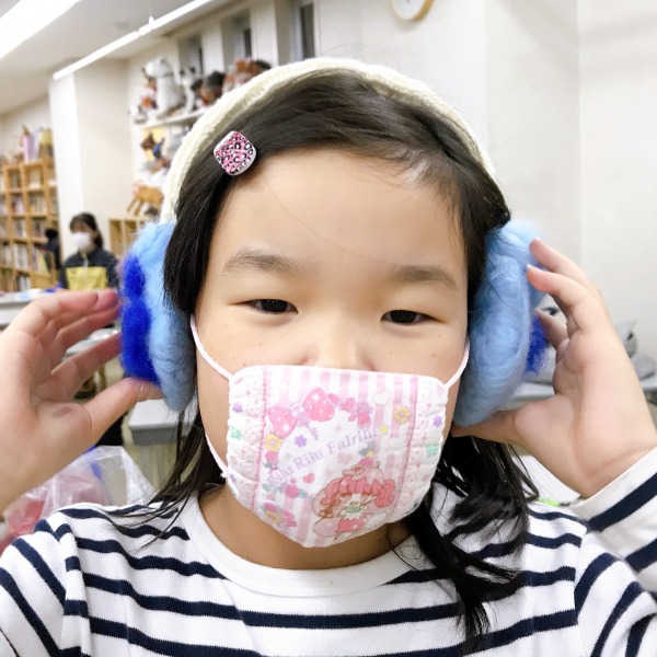 動物の絵を描いたり、シンプルな幾何学形の模様を作ったり、それぞれの好みが反映されたイヤーマフ。これはうれしいぞ!持ち帰りするのがとても楽しみな様子。