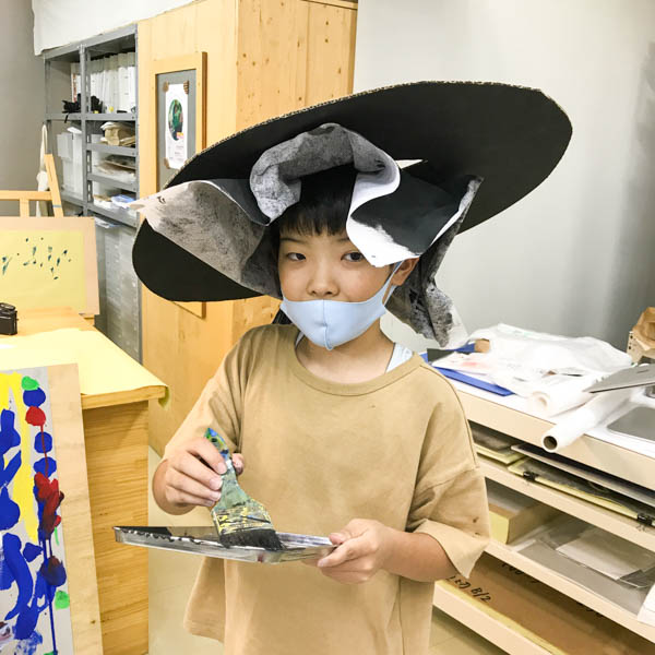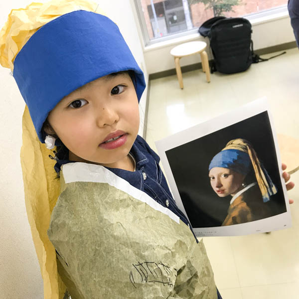 なんだか雰囲気満点なのは、みんな無意識に自分に似た作品を選んでいたからかもしれません。緊張しましたが、やり遂げた感も満点な経験でした。楽しすぎたのか「持って帰れるの?家でも変身する、やったー!」いろいろな名画に挑戦してみると楽しそうですね。