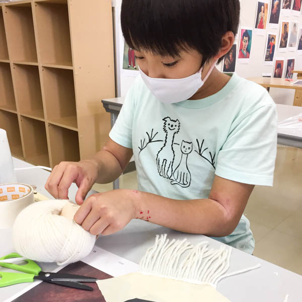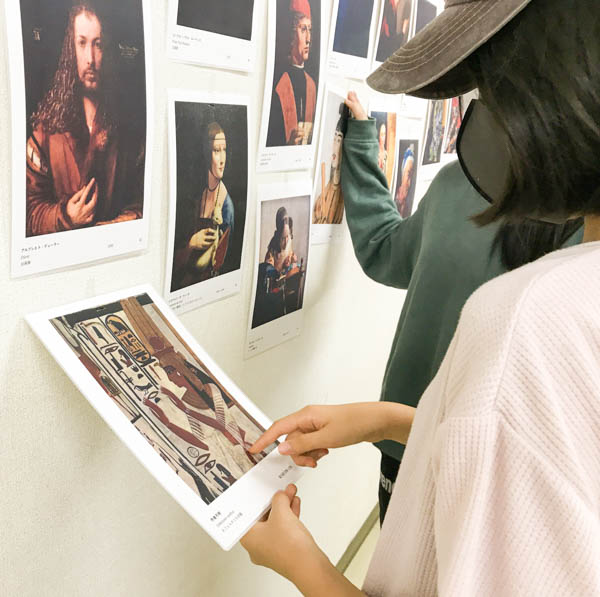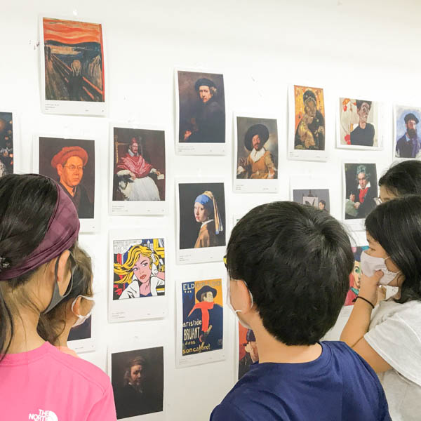 この自分ではない「誰か」に変身するというおもしろい手法に、ジュニアのこどもたちが挑戦!9月の制作は自分が選んだ名画の登場人物になってみることにしました。
