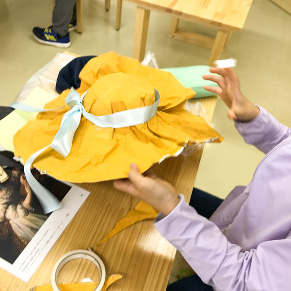 またその絵をそっくりに再現するつもりでみると「この帽子の形変わってるな」「手に持ってるもの何だろう?」普段の鑑賞とは発見するものが少し違っていた様子です。次週以降で必要になりそうな服装、アクセサリーなどを確認してこの週は終了。次回をお楽しみに!
