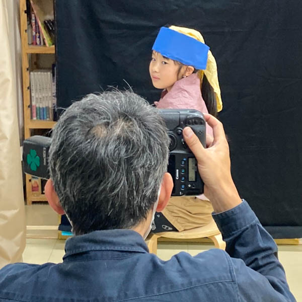 ノリのいい子もいれば、目を合わせるのも恥ずかしいというシャイな子も。しかしはじめは照れていた子でも、橋口さんの細かなポーズの指示や誘導でみんな楽しそうな顔に変わっていく。さすがのお仕事ぶりで、最終的に全員名画の登場人物になることができました。拍手!