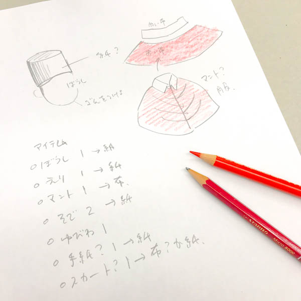 まだまだ制作したいところではありますが、次回も続きができますのでいったん終了。全てを手作りするのではなく、家にある服やアクセサリーなどで使えるものがあれば使ってもOK!おうちで探してみるように伝えました。