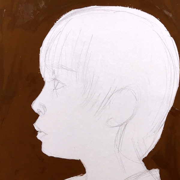 ちょうど中間の色を横顔全体に塗って、ベースの色をつけた状態からスタートしました。