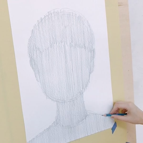 目鼻口などのでこぼこした形は、影の暗い部分が他のところよりはっきりしています。膨らみや陰影を、トーンを重ねて表現していきます。