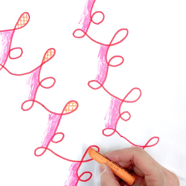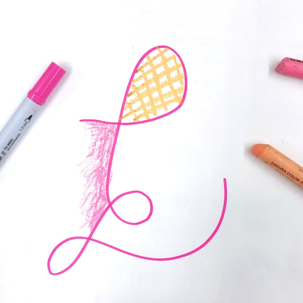 同じ色を使っても、クレパス、色えんぴつ、サインペンではそれぞれ感じる印象がまったく違います。ふんわりさせる、はっきりビビッドにする、自分で決めた雰囲気に合う描き方で仕上げました。