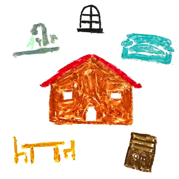 今月はおうちのインテリアとなる絵画作品を作ります。まずはかざる場所をイメージしよう。「自分の部屋」「ピアノの部屋」「やっぱりリビングかな」さらにどんな雰囲気にしたいかイメージを膨らませます。