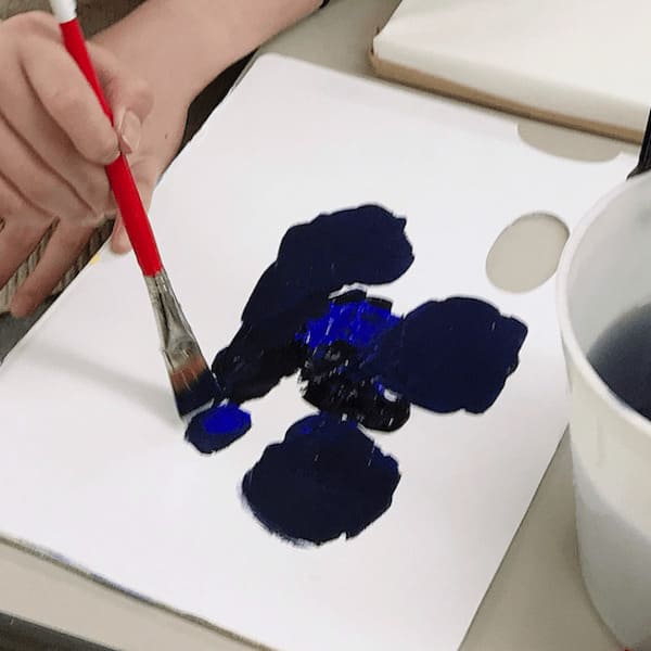 制作のコツを掴んでいる上の学年の子の中には、わざと地塗りで色ムラを作っておき、モチーフの明暗を描き込む時の表現として利用する子もいます。これで作品のベース作りは完了。乾いたら描きこみをはじめます。