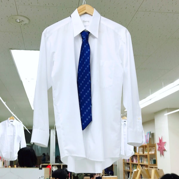 モチーフは「白いYシャツ」。新中1の子たちはメリハリをつけて描くポイントになる濃色のネクタイ付き。中2〜高2のみんなはネクタイなしで白いシャツをしっかり表現します。