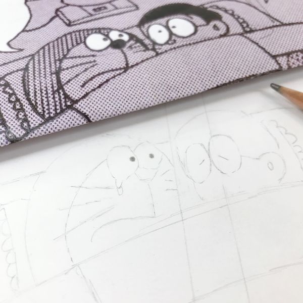 かんたんそうな1コマを選んだはずなのに、実際描いてみると...「なんかこれ、大変かもしれない!」観察するポイントが多い子ほど、大変に感じたかもしれませんね。集中して細部を観察しているからか、途中「目がしぱしぱする」というほどの集中力でした。