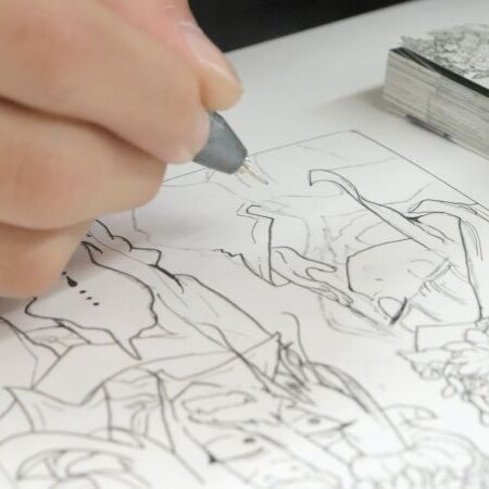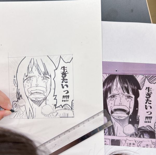 好きな1コマを実際に描いてみることに。「ここ描きたい!」と選ぶお気に入りの1コマが、密度の高い線や描き込みがあったりして模写をするにはちょっと大変そうなこともありましたが、「やっぱりかっこいい」「好きなコマだから研究したい」と挑戦することに。