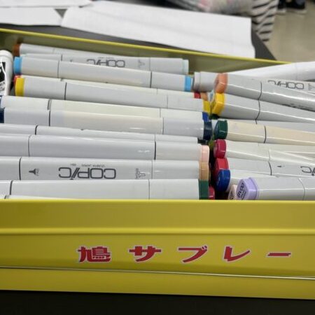 肌の色ひとつとっても、いろんなトーンがあります。「どれがこのキャラに1番合うんだろう?」これよりは薄いけど、そっちよりは暗めがいい...あれこれ試しているうちに、気づけばテーブルの上がペンだらけ!確かにここは、こだわりたい部分です。
