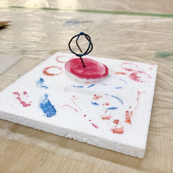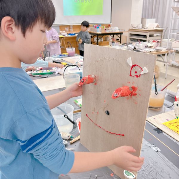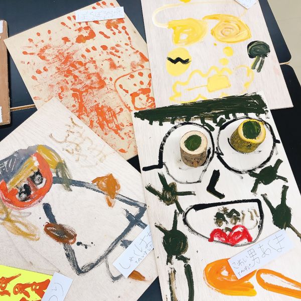 こちらの子もだんだんと絵から何かが立ち上がり始めています。選ぶマテリアルや技法によって、表現が変化していくのは自然なこと。支持体についた絵の具にも、不思議と動きやリズムが感じられます。