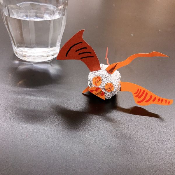 大きな作品を作り終わった後に「もうひとつつくりたい!」と生まれた作品。ツノなのか、手なのか、細部にこだわって作っていました。「ちょっとこまっている悪魔」とのことです。