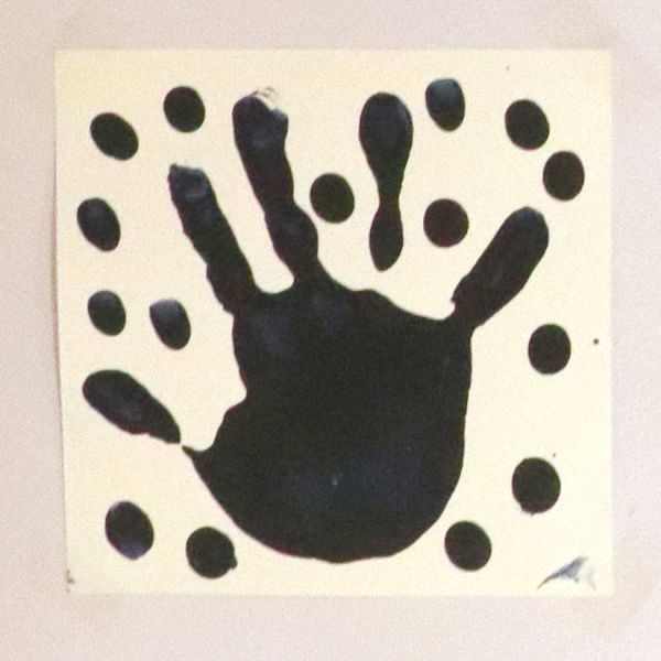 網を置いた上から、グリグリ、ペタペタとボンドを混ぜた絵具を塗ってみたら、こんな模様に!網を外した時の「わー!見てー!」と嬉しそうな声に、みんな興味津々で刺激を受けます。