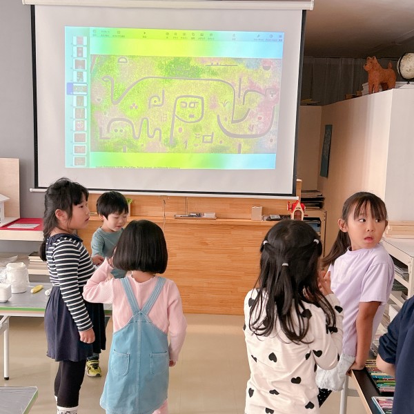 パウル・クレーの作品は、ちょっと不思議な印象を受けるものが多いです。こどもたちに「どんなふうに描かれているかな?」と問いかけながら、いろいろな作品を一緒に見ていきました。
