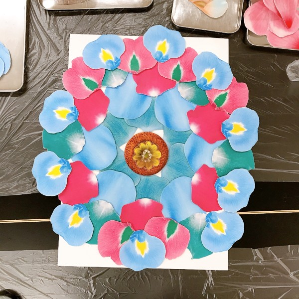 こちらはお花の真ん中部分の仕上げで、複数の形のちがう型を順番に使って、重ね技を編み出していた5歳の男の子。こんな表現ができるなんて!作品を見たお母さんも「なんか本物っぽいね」とびっくりしていました。