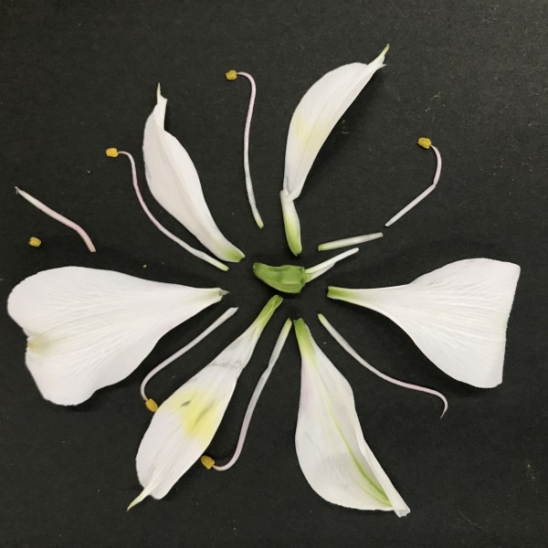 バラバラにしてみると、普段はあまり絵に描かない色やパーツが見えてきて、なるほど〜と感じ入りました。その数や形にも何か法則性がありそうです。花は見えないところまで美しく、これを見たり比較しているだけでも何だかすごく楽しい時間。