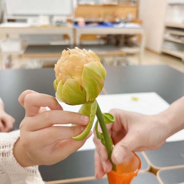 札幌はまだまだ肌寒いですが、新年度の始まりです。キッズコースでは春らしく花をテーマにした制作からスタート!紹介したお花はまだ蕾のようですが、「きれいー!」「なにこの色」などキッズのみんながさっそく興味津々。