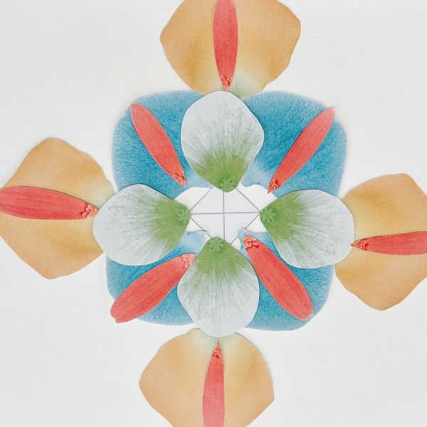 色や形を変えるだけではなく、5と3、3と3、2と2と2...並べ方のルールを変えてみるだけでも、いろんな花ができあがります。世にも珍しいお花ができた!