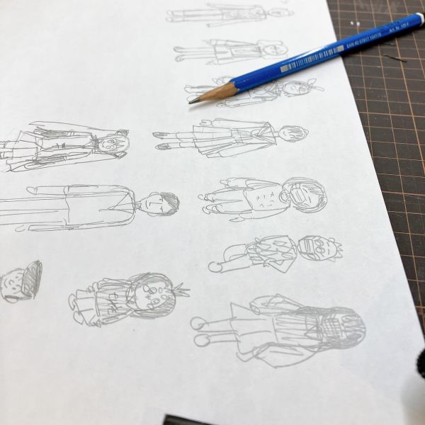 小さな作品なので、それぞれの人物の特徴を絞り込んでいきました。「ここだけは絶対に必要だ」というポイントをしっかりと作り込み、その他の部分については、見る人が「こんな人物なのかな?」と想像する余地を残すような、ちょっとユルさがあるくらいの表現もおもしろいものです。