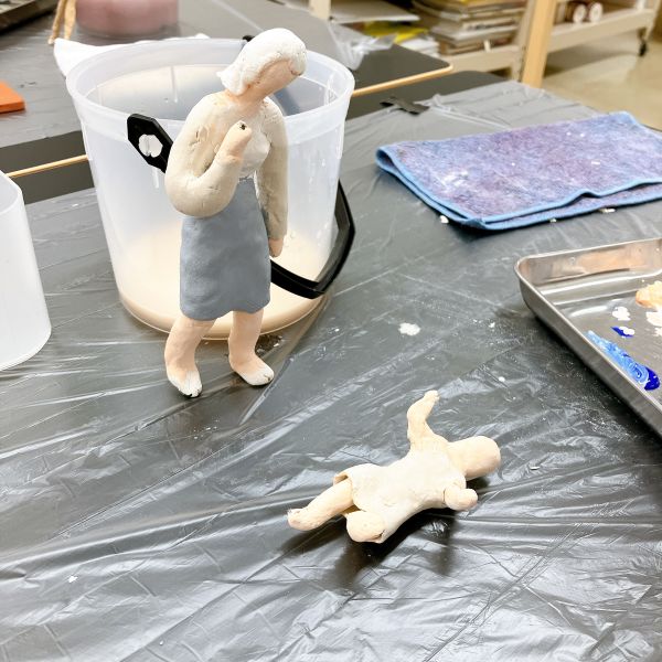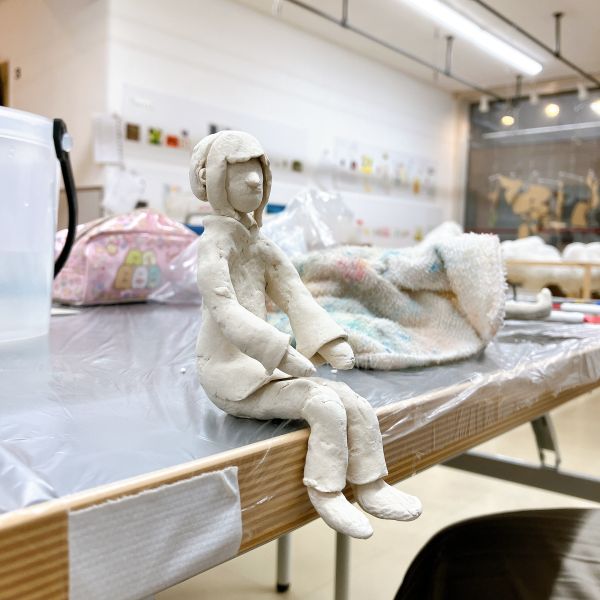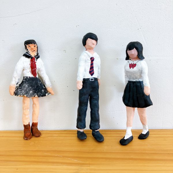 複数の人たちが作っていたのが、学生さんたちの像。自分たちと同世代の人物像は、やっぱり外せない様子。制服にも時代性がありますから、どこか今風な学生さんたちに感じられますね。