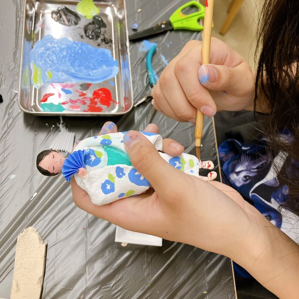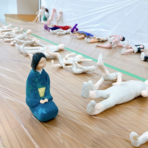 この月のテーマは「人々」。土偶や古代彫刻、さらに日本の雛人形やロシアのマトリョーシカなど、古くから様々な人の形が作られてきました。それぞれの時代や文化を色濃く反映されていて、見れば見るほど深いものです。このプログラムでは、現代の中高生が考える人物像を形に表現していきます。