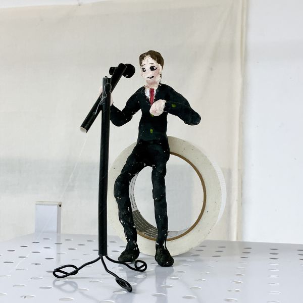 これはレアキャラかもしれません、こちらはお仕事中の芸人さん。マイクスタンドもセットで作っています。足や腕の角度、表情などにも、すごくこだわりがありますね!どんなトークをしてるんだろう?と思わず想像してしまいます。