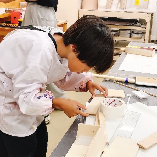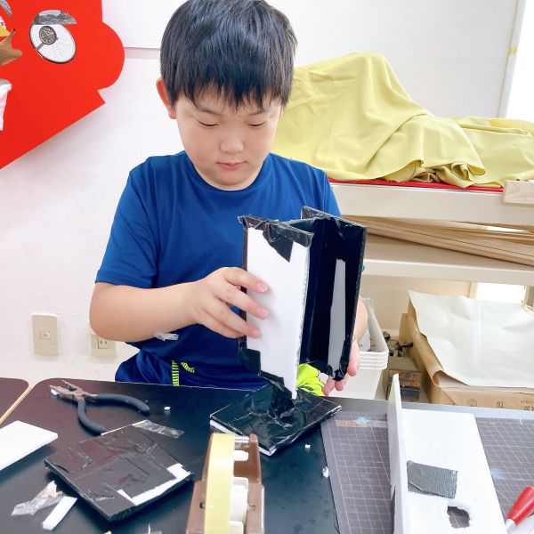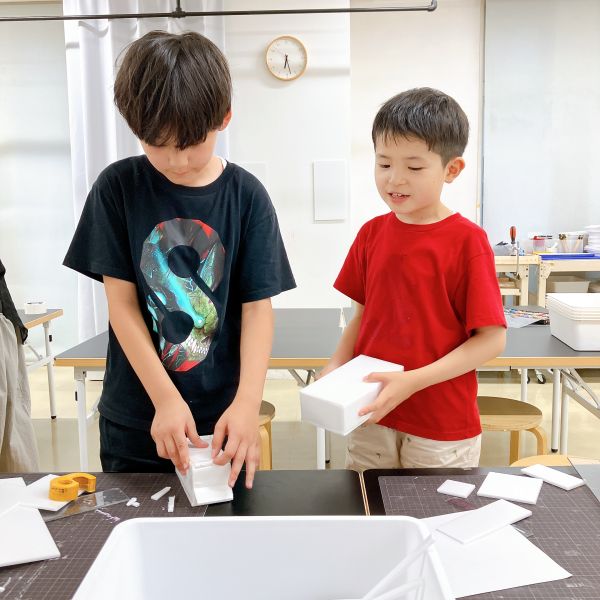 自分の大事なものをこっそり隠しておくため、「作りたい"仕組み"がある!」という子もちらほらと。たとえば「隠し扉をつくりたい」「箱の中にさらに蓋をつくる」「引き出し式にする」など、構造的な面におもしろさを感じて、発想を広げている子もいました。