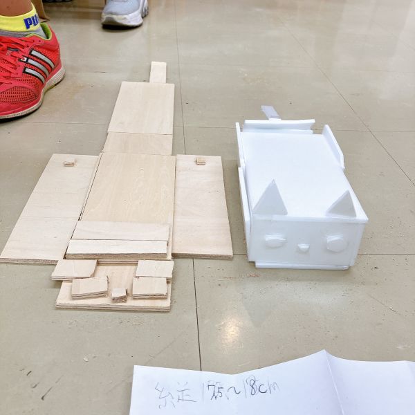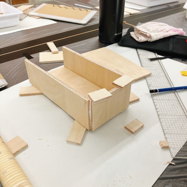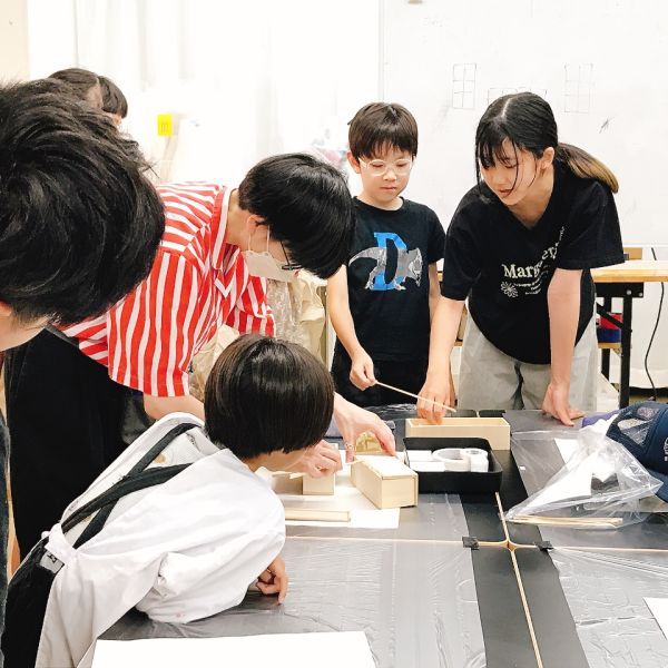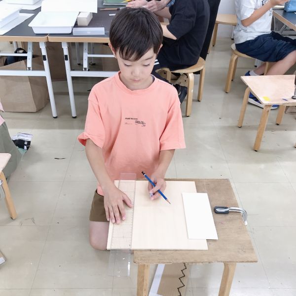 前回からの1週間で、さらに改良したい点や仕上げについて考えてきた子が多くいました。「中に仕切りをつけたいな」「まだ切りたいパーツがたくさんある」「早く色とか模様の仕上げをしたい!」こどもたちのいろんな希望がじわじわと滲み出る。