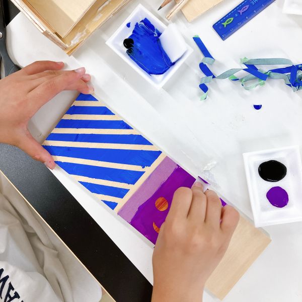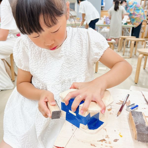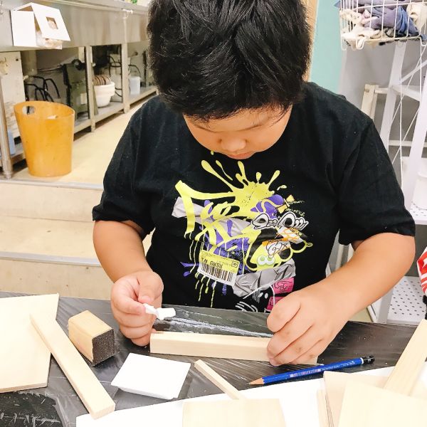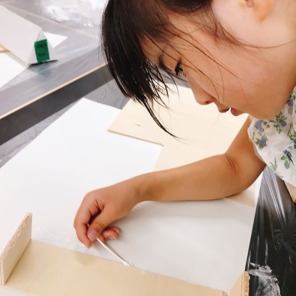 形ができたら、あとはどんな仕上げをする?シンプルに1色で全体をペイントする子もいれば、マスキングテープやシールを使って模様をつくるのも人気でした。この最後のペイントで大きく印象が変わる子もいて、意外な仕上がりに目が離せませんでした。