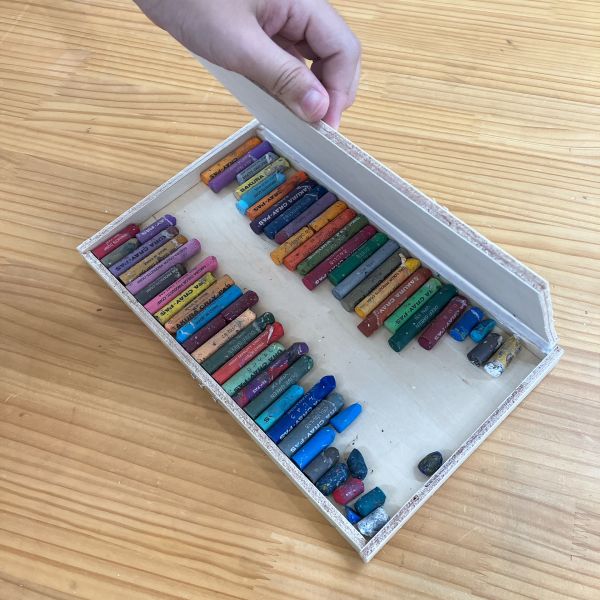 こちらはなんと「50色のクレパスを入れるためのケースを作りたい」とのこと。元々のケースが少し柔らかく、「持ち運ぶたびに中身が寄ってしまうのが問題」とのことで、解決したい課題がはっきりしていました。