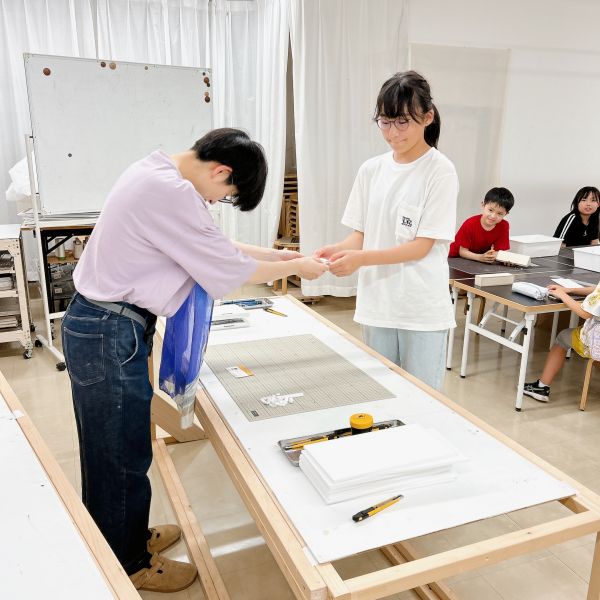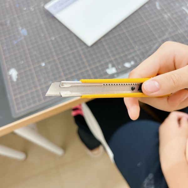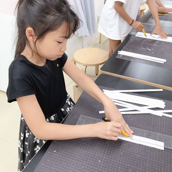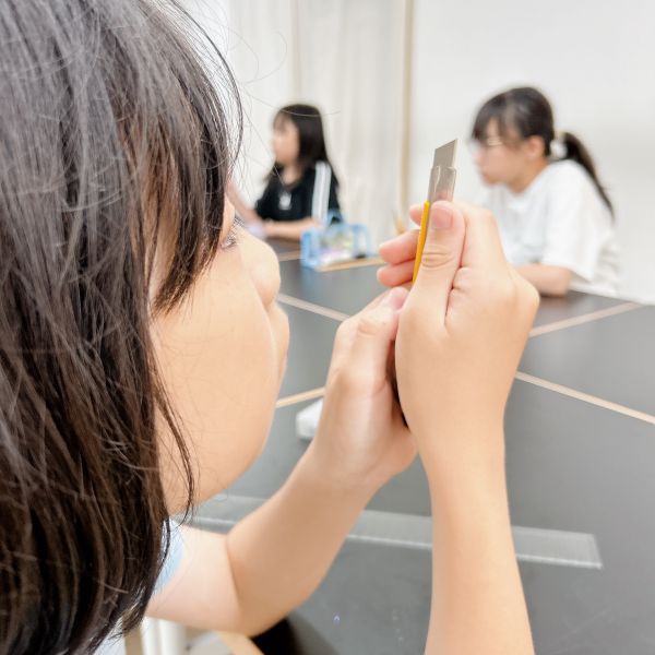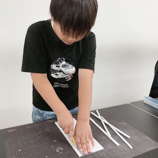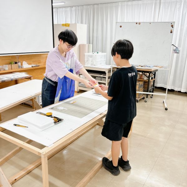 スチロール板をカットするには、定規とカッターを使います。みんなはカッターを安全に使えるかな?実はカッターを定規に当ててきれいにまっすぐカットできる人は、大人の中にもそう多くいません。そこでキッズに続いてジュニアのみんなも、道具の安全講習で扱いをしっかり学び、習得したら免許証を発行することに!