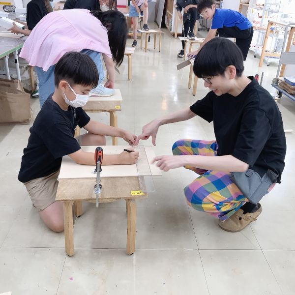 それぞれが考えた形を、最終的に木材で作っていきます。箱のたて・よこ・高さの他、仕切りや蓋、引き出しなど、自分の好みの形で組み立てていきましょう。計画性はもちろん、高い工作スキルも必要になりそうだから、本気でチャレンジせねば!
